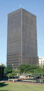 Archie W. Skidmore first came to the Key Building in the late 1960’s (then the Centran Building) as a partner in the law firm of Schwab, Sager, Grossenbaugh, Skidmore, Nukes & Rothal Co., L.P.A. At that time, the law offices were located on the 8th floor. The firm moved its offices to the 11th floor in the late 1970’s (then the Society Building) where it remained until recently. The new offices are located across the street on the 12th floor of the National City Center where the space has been newly refurbished from floor to ceiling. The new address of Skidmore & Associates is National City Center, One Cascade Plaza, 12th Floor, Akron, Ohio 44308. From left to right: Brian K. Skidmore and Archie W. Skidmore